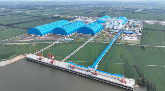 步入港区,四个直径达100米的圆形自动化料场巍然耸立,宛如巨型“煤仓”。来自山西、陕西、内蒙古的煤炭在这里暂时储存,等待转运。港区内静态储备能力高达200万吨,是目前我省内河港口中储备能力最强的港区。