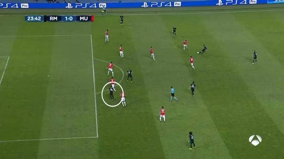 齐达内赛前关于“不想使用更多的中场球员”,“避免和对方在中场火拼”的讲话迷惑了不少人。在实际比赛中,法国人采取了更勇敢、更积极的打法,力争在中场取得更多控球。当面对着由博格巴、埃雷拉和马蒂奇组成的强大中场时,前提是能在第一时间将球快速转移,以便让对手的紧逼扑空。而随着皇马球员配合上的日益精熟,以及在比赛中保持着高度的精力集中,一切都变得简单顺畅起来。不管是在上半场还是下半场,皇马的控球率都超过了对手,于是进攻的机会也就同样多起来。